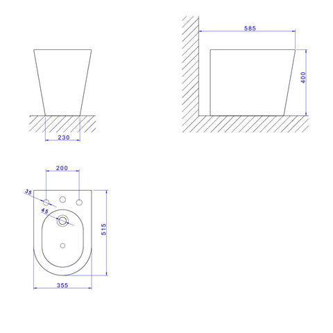 Bidê Deca 3 Furos | Lk - Ébano Fosco