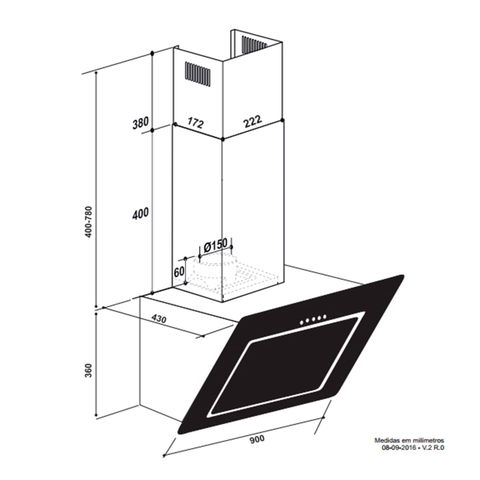 Coifa de Parede Elettromec Serata Vidro Preto 90cm 220V - Aspiração Perimetral, Iluminação LED e Comando Touch para Exaustão ou Depuração