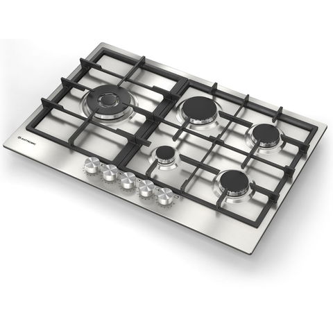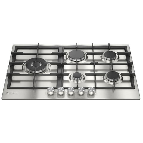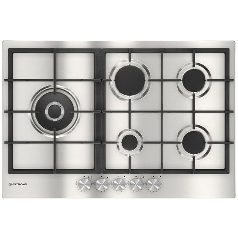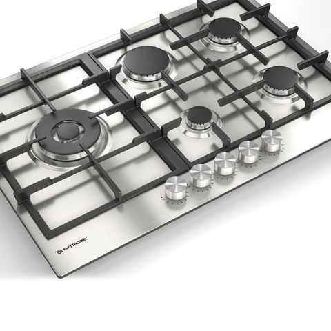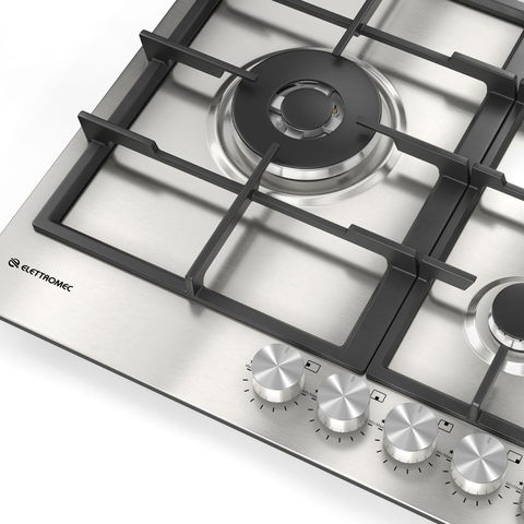 Cooktop a Gás 75cm Elettromec Luce Bivolt - 5 Queimadores em Aço Inox com Step Flame, Trempes em Ferro Fundido e Acendimento Super Automático para Cozinhas Sofisticadas e Seguras