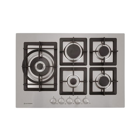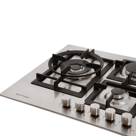 Cooktop a Gás 5 Queimadores Elettromec Quadratto 75cm Inox Bivolt - Design Versátil, Trempes em Ferro Fundido, Válvula de Segurança e Acendimento Superautomático