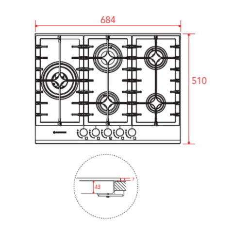 - Variedade de queimadores: Possui cinco queimadores, incluindo um Dual Flame lateral de 4 kW, equipado com um sistema de válvulas de segurança que bloqueia a passagem de gás se a chama se apagar. 🔥