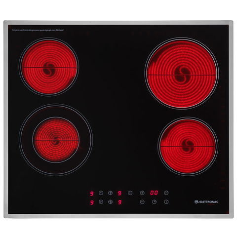 Cooktop Vitrocerâmico Elettromec 60cm Preto e Inox 220V - Painel Touch, Trava Segurança, Detecção Calor Residual, Alta Eficiência e Economiza Energia